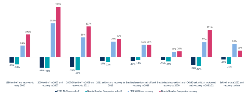 This is demonstrated by an analysis of how different parts of the UK market have performed after major sell-offs, the manager said.