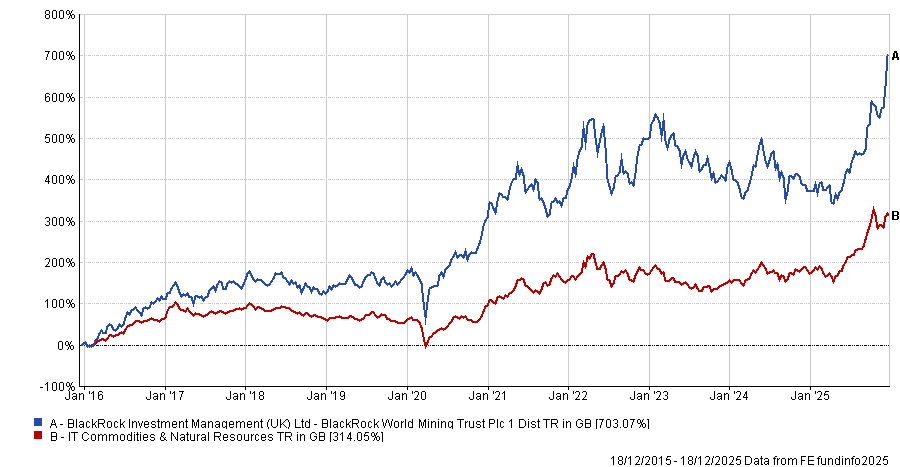 The BlackRock World Mining Trust, managed by Evy Hambro and Olivia Markham, crucially also adds exposure to gold – 2025’s favourite safe haven – but all that glitters isn’t just gold. Other metals look equally compelling.