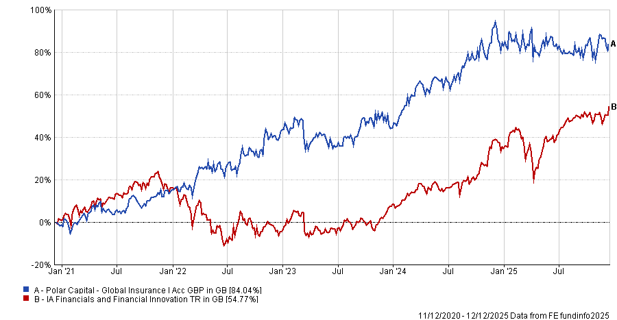 The £2.5bn Polar Capital Global Insurance fund is co-managed by Nick Martin and Dominic Evans and aims to act as a pool of underwriting capital by investing in high-quality insurance businesses with underwriting discipline.