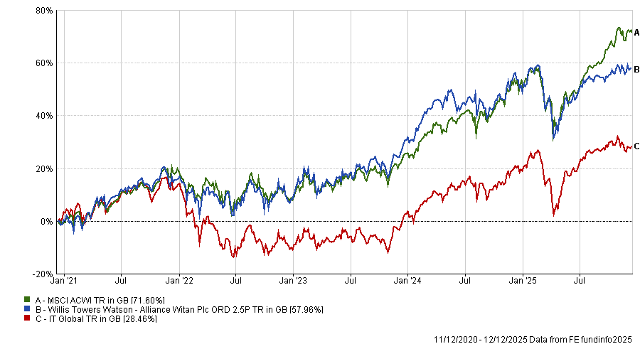Over the past decade, Alliance Witan has gained 221.9%, comfortably ahead of the IA Global sector average of 154.8%.
