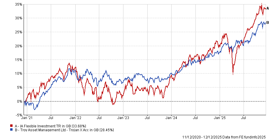 Trojan has vacillated between the third and fourth quartile of the IA Flexible Investment sector for returns over one, three, five and 10 years as markets have risen.
