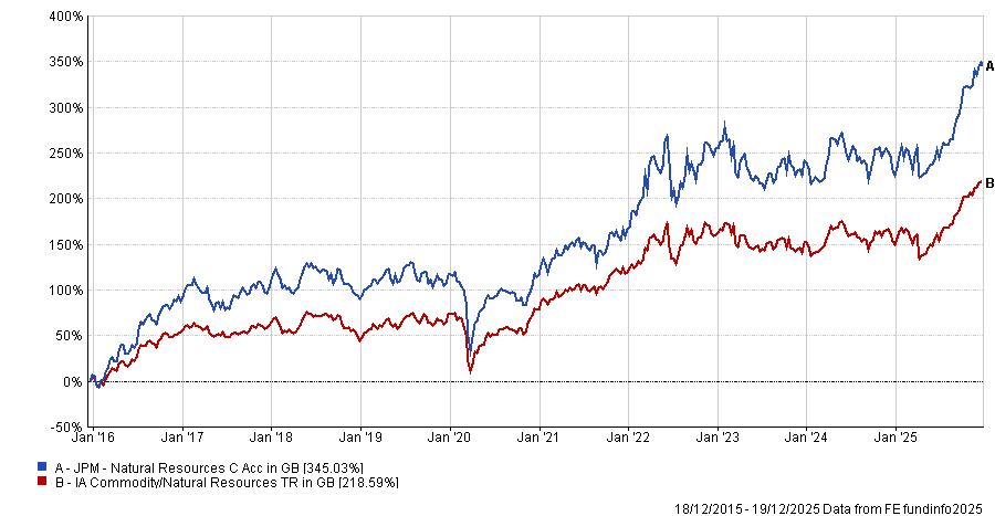 Managed by Christopher Korpan and Veronika Lysogorskaya, the fund has made top-quartile returns in the IA Commodity/Natural Resources sector over the past 12 months, three years and decade.