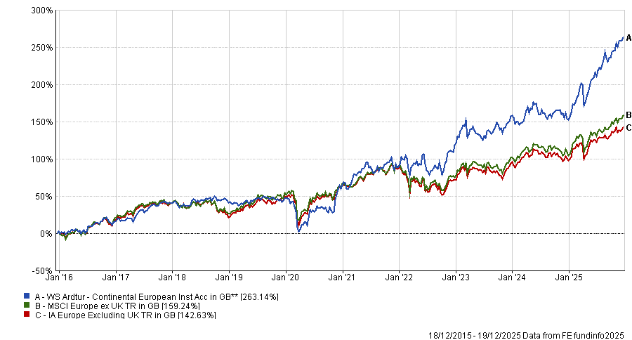 It has been a standout in the IA Europe Excluding UK sector, sitting in the top 10 of the over 100-strong peer group over one, three, five and 10 years.