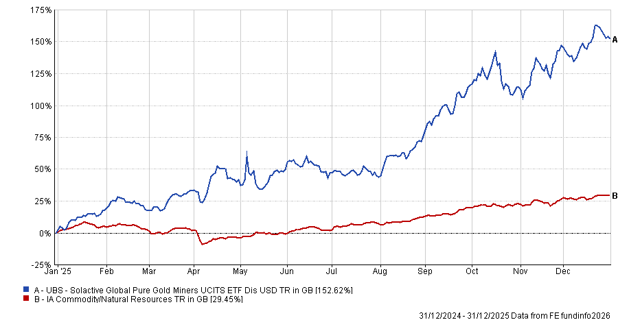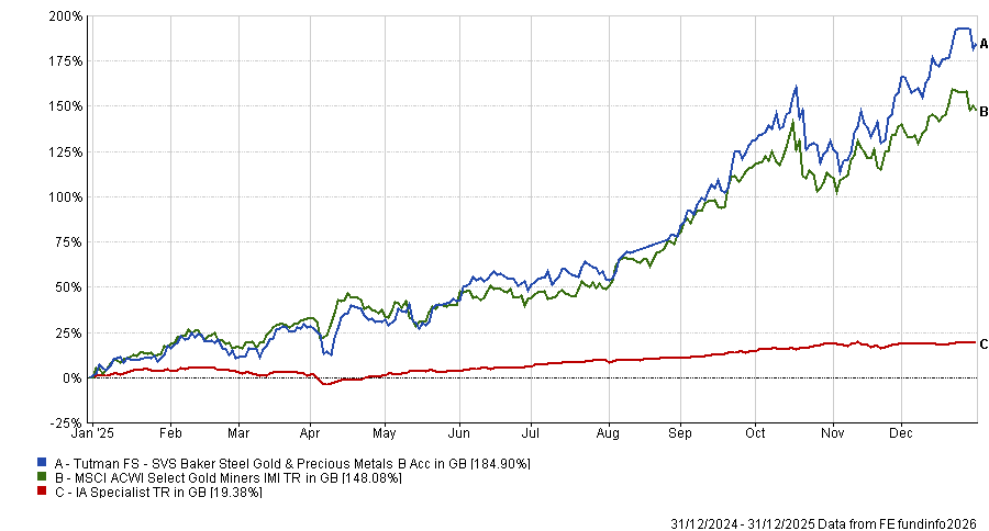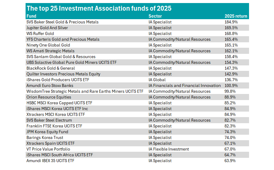 Funds with exposure to precious metals dominated the list of top-performing strategies in 2025, Trustnet found.