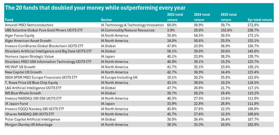 Trustnet looks at top-performing funds that made top-quartile returns in 2023, 2024 and 2025.