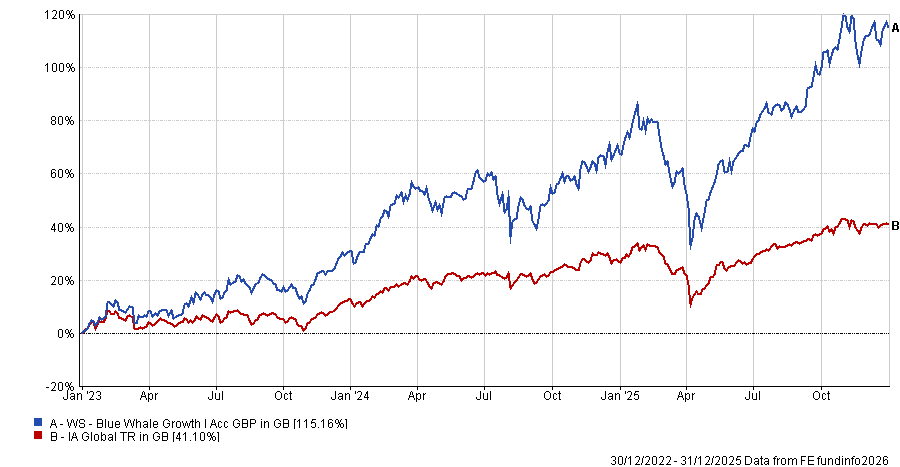 The strategy has benefited from the rise of technology stocks since 2023. For example, it holds a 31% allocation to Nvidia, which made 1,040% in sterling terms over the past three years, according to FE Analytics data.