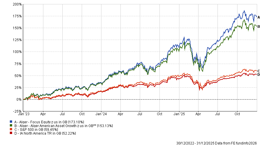 Heading up the list of US funds over three years is the Alger Focus Equity fund (up 173.1%), led by FE fundinfo Alpha Managers Patrick Kelly and Ankur Crawford.