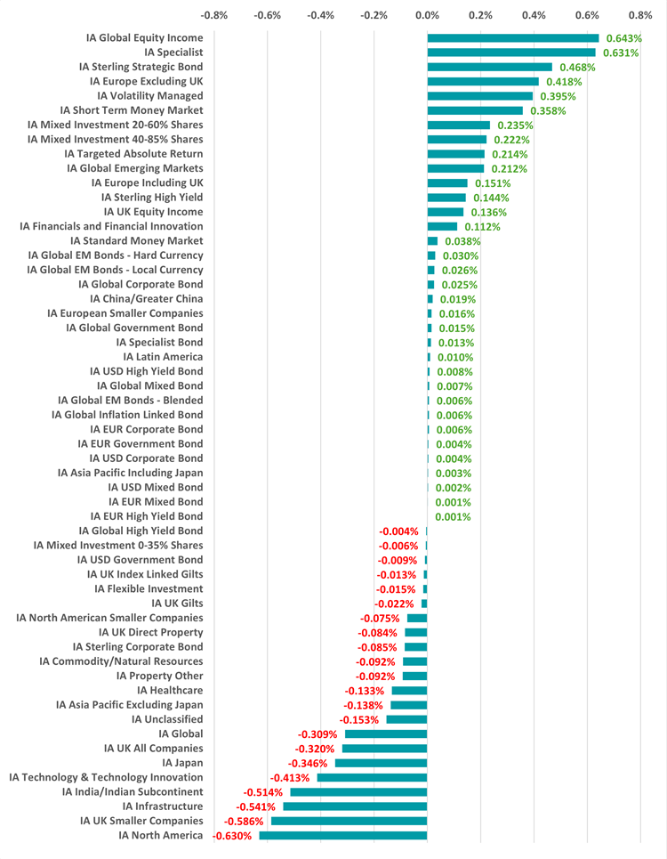 Meanwhile, the presence of IA Sterling Strategic Bond, IA Volatility Managed, IA Short Term Money Market, IA Mixed Investment 20-60% Shares, IA Mixed Investment 40-85% Shares and IA Targeted Absolute Return towards the top of the chart hints at investor caution during the years of often turbulent geopolitical backdrop.