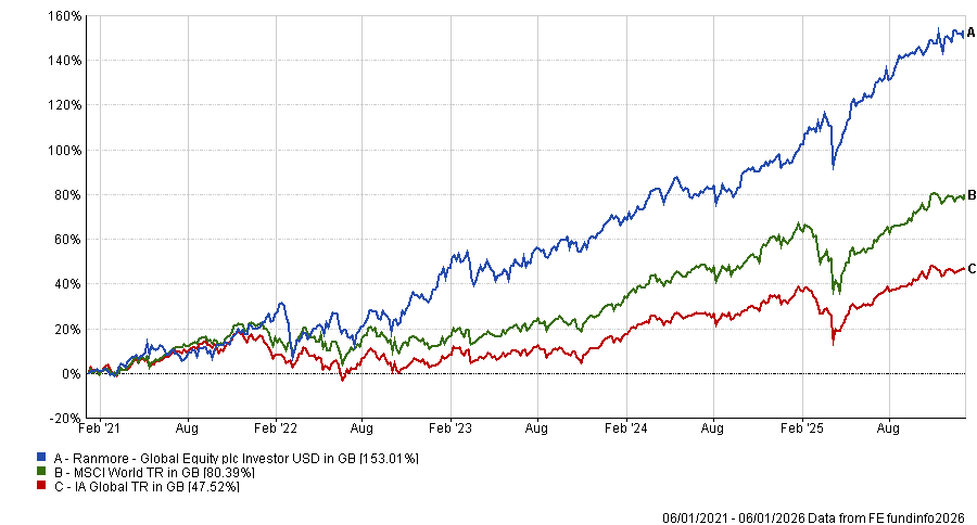 The fund has delivered strong returns over one, three and five years, gaining 29.8%, 75.9% and 153% respectively.