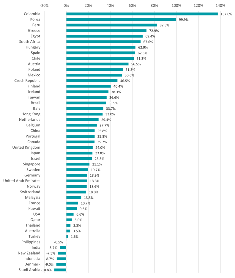 Columbia has been the best performer, which analysts have attributed to low valuations, improving investor sentiment, hopes of a more market-friendly government and a heavy skew to financials in the index.