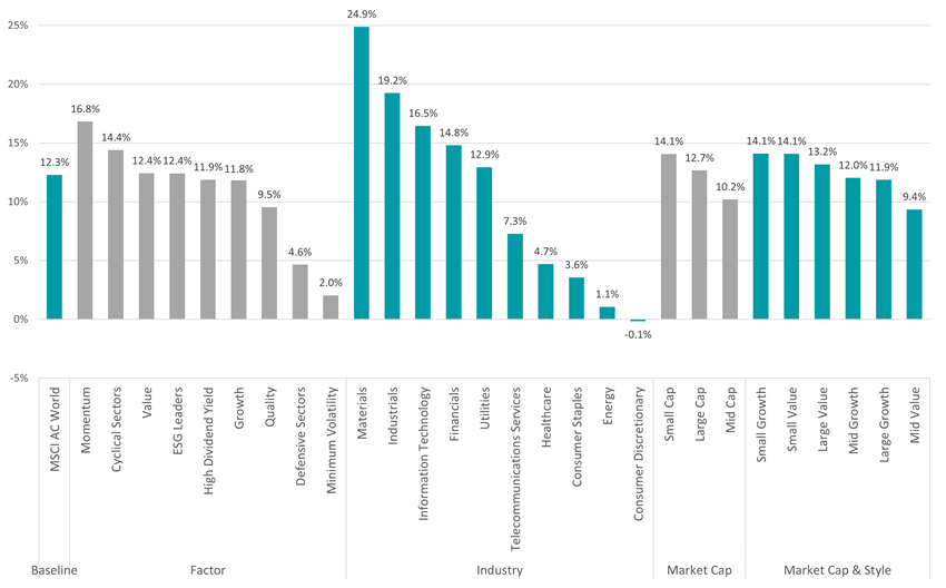 Performance of MSCI AC World and sub-indices during Trump’s first year