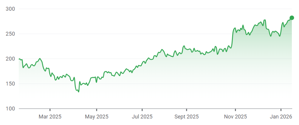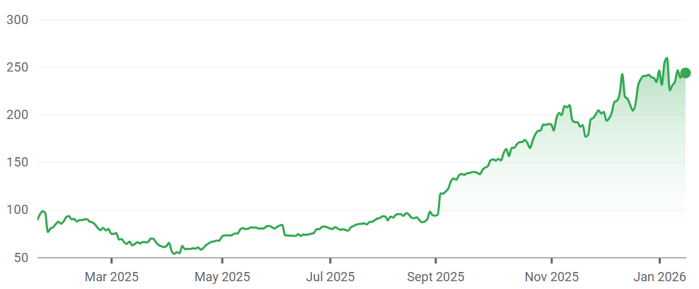 The company’s share price is up 174.5% over one year and 342.3% over five years.