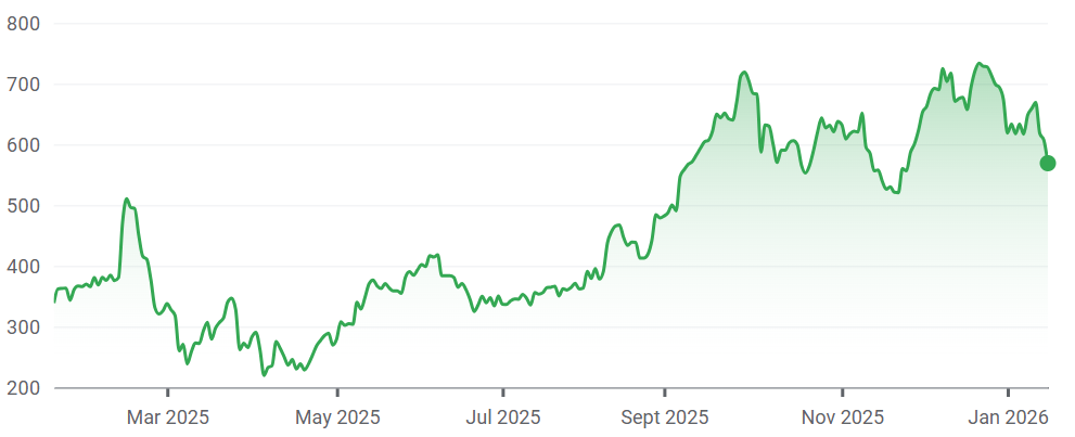 Stock price performance over 1yr