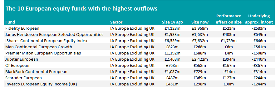 Fidelity European had £683m withdrawn, FE Analytics’ Market Movements tool shows. It made 13.6% last year, putting it in the IA Europe Excluding UK sector’s bottom quartile.