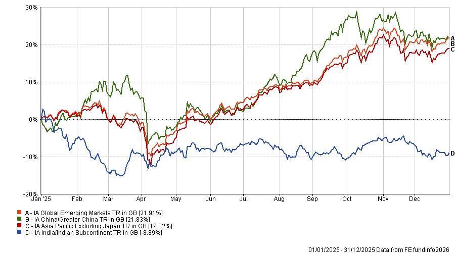 Indian equities have enjoyed a bullish run in recent years, thanks to sustained economic and earnings growth. However, 2025 proved to be an exception to the rule, with the IA India/Indian Subcontinent sector underperforming the rest of the Investment Association (IA) universe as global investors pivoted towards cheaper markets and funds linked to the artificial intelligence (AI) boom.