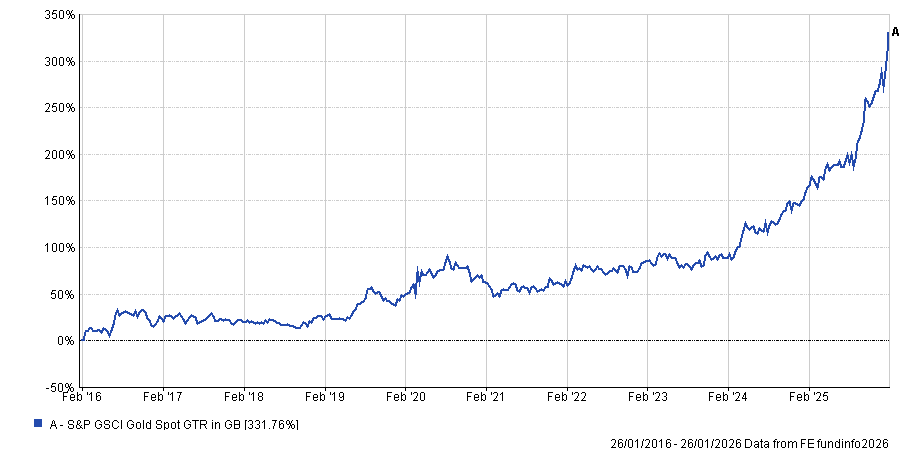 Laith Khalaf, head of investment analysis at AJ Bell, said: “Gold is on an absolutely blistering run at the moment. It's now cruised through the $5,000 mark when it was only trading at $2,000 an ounce just over two years ago.”