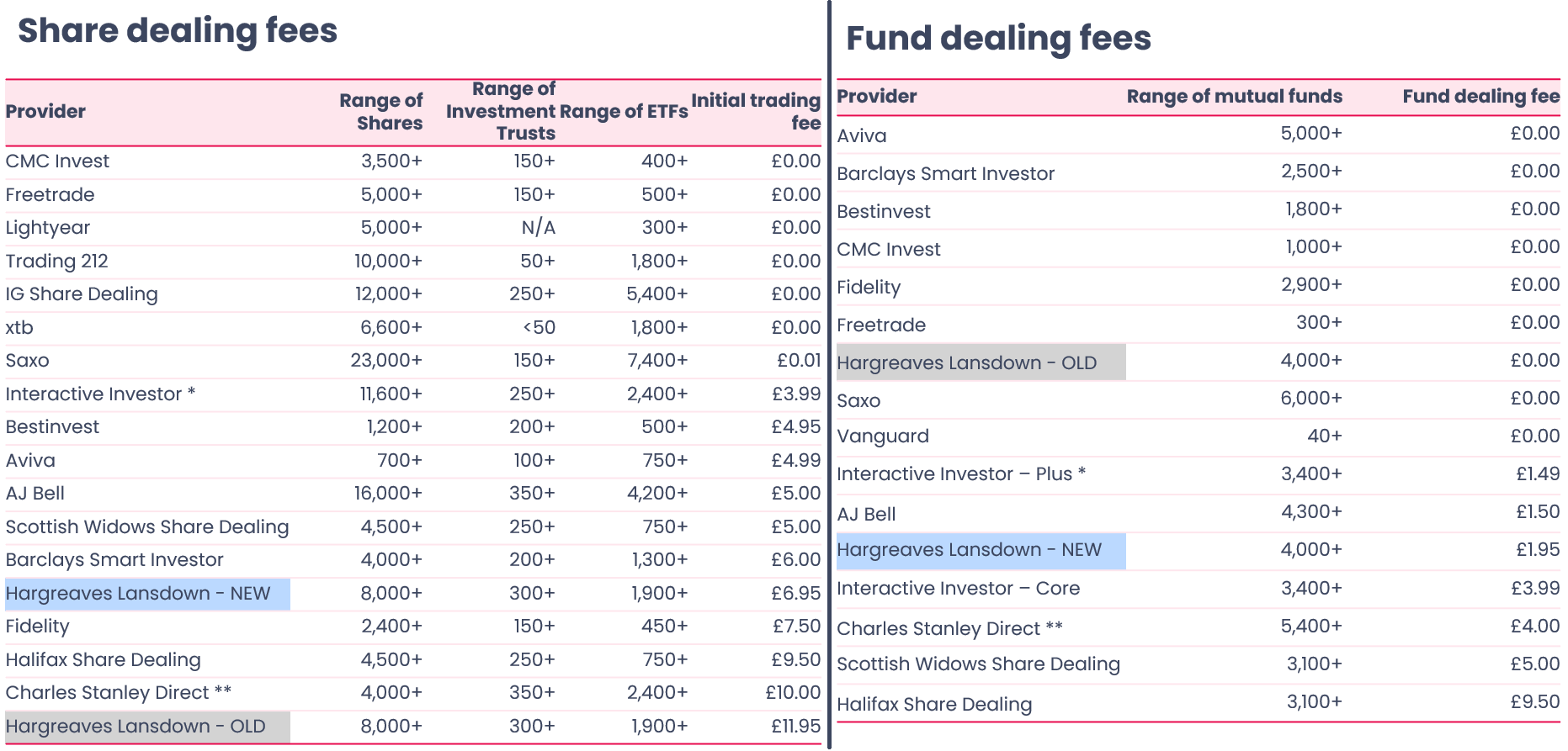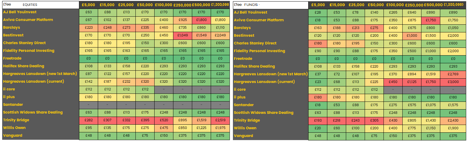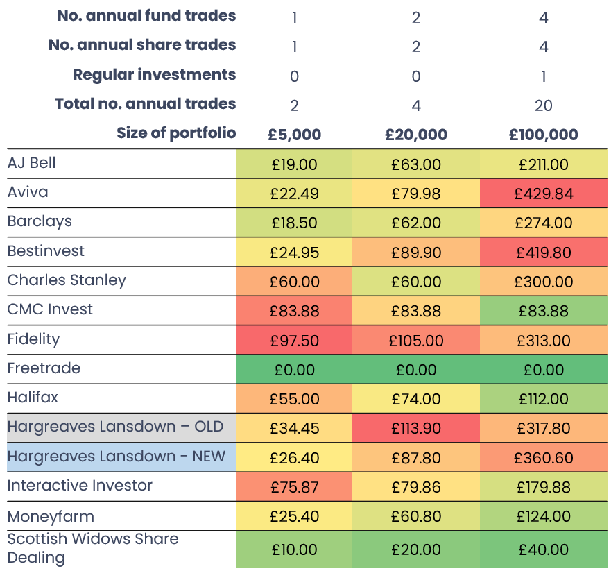 Comparison of share and fund dealing fees