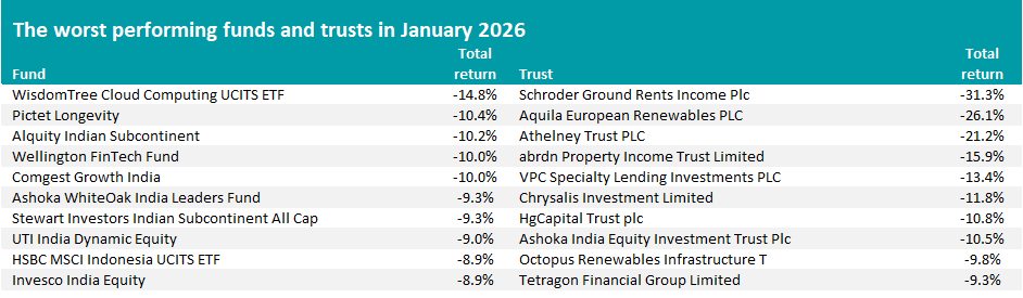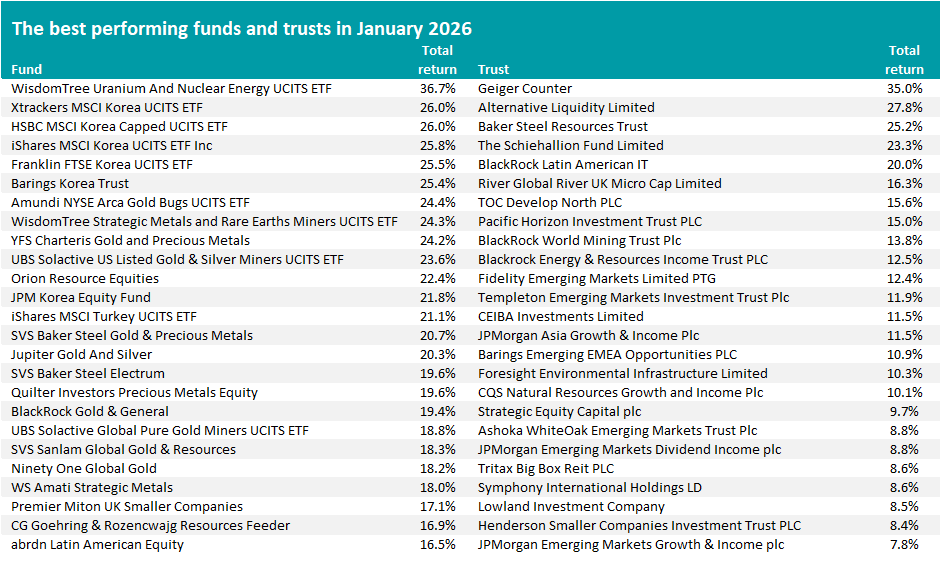 The best and worst funds and trusts of January 2026 | Trustnet Skip to the content