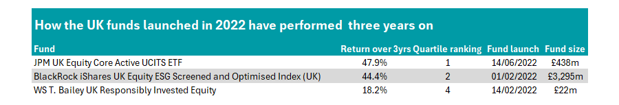 Three UK funds launched in 2022 crossed their pivotal three-year anniversary last year, data from FE Analytics shows, but only one was able to top its sector while establishing its track record.