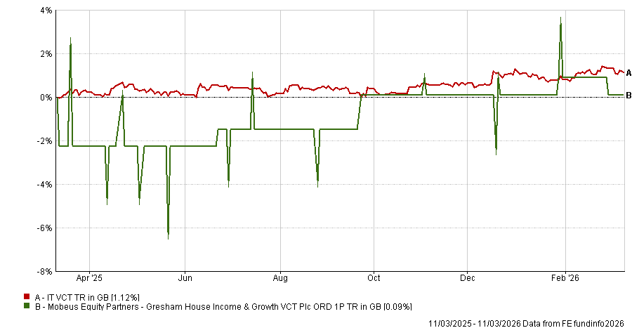 Gresham House Income & Growth VCT has returned just 0.1% over one year but 33.1% over five years and 130.5% over 10 years, placing it in the top quartile of the sector.