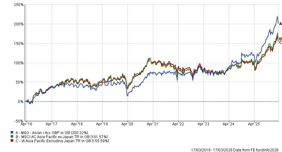 “Managed by veteran Dave Perrett since 2017, this fund has an outstanding track record,” he said. Indeed, over the past 10 years it has tripled investors’ money, a top-quartile return in the IA Asia Pacific Excluding Japan sector.