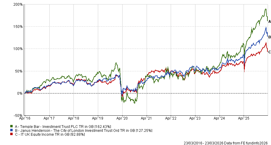 In its 2025 annual report, Temple Bar paid out 15p per share in 2025 – a third more than the 11.25p paid in 2024. The total was boosted by a 0.75p per share payment from its £929m of capital reserves from historic investment gains, meaning last year’s pay-out was not fully covered by revenues, which rose from 11.8p to 13.8p per share.