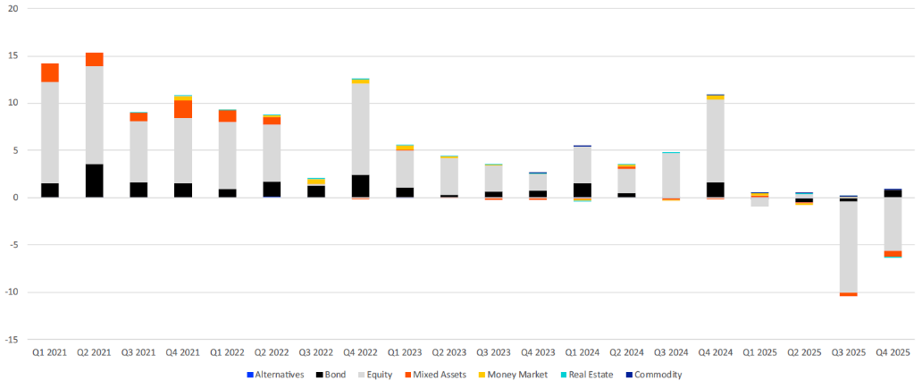 According to LSEG Lipper data, sustainable funds logged four consecutive quarters of outflows in 2025, with sustainable equity funds the biggest contributors to redemptions.