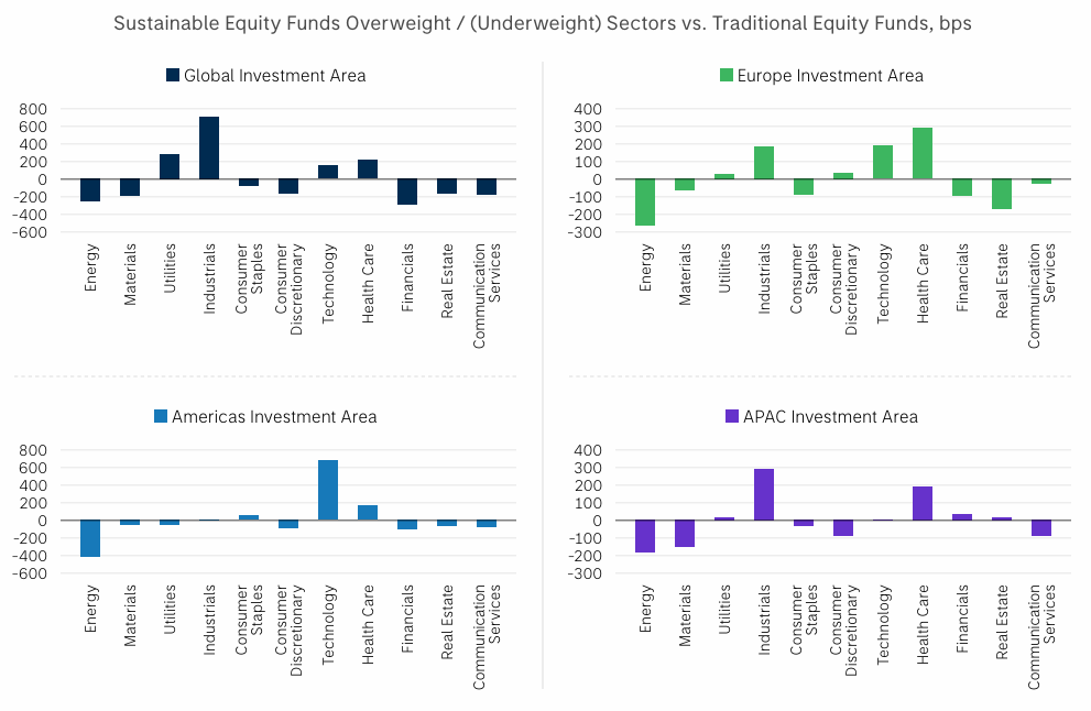 A 2023 report published by Morgan Stanley noted that, at the time of the tech boom, sustainable funds targeting the Americas were overweight technology and more likely to outperform, holding an average 29% of assets in technology versus 23% for equity funds generally, although this was not the only factor influencing outperformance.