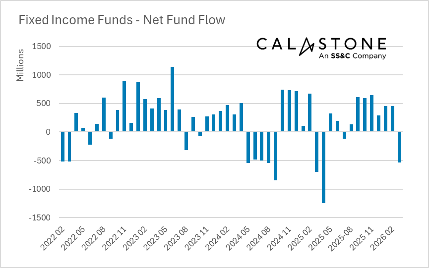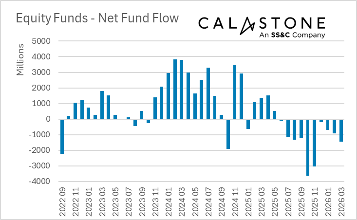 The outflows marked the worst month since November 2025, when UK Budget concerns prompted significant selling, and extended the run of equity fund redemptions to an unprecedented 10 consecutive months. March was the seventh-worst month on record for equity fund outflows.