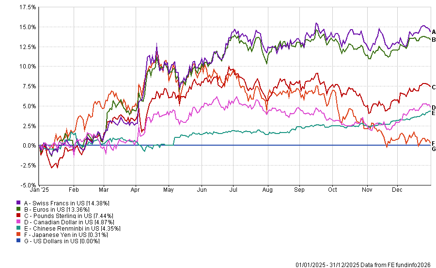 Last year’s ‘Liberation Day’ tariff announcements sent the dollar tumbling, contributing to a near-10% fall in the dollar index – its worst annual performance since 2017. That weakness continued into January 2026, when the dollar hit four-year lows against other major currencies.