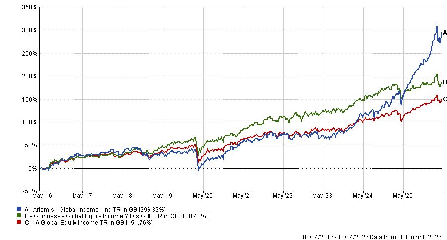 Global equity income funds play an important role for investors seeking diversified sources of dividends and long-term total returns. Their appeal has been reinforced by the IA Global Equity Income sector’s top-quartile performance against all Investment Association sectors over three, five and 10 years to the end of March 2026, suggesting the approach has held up across different market environments.