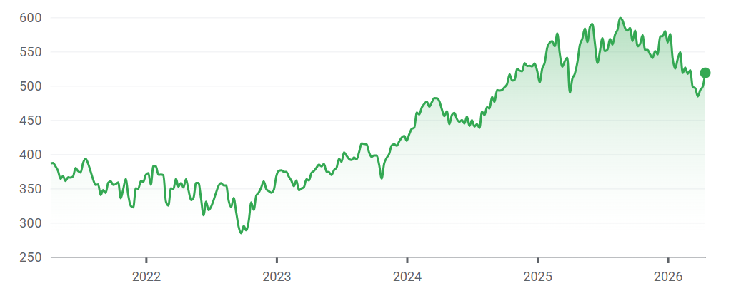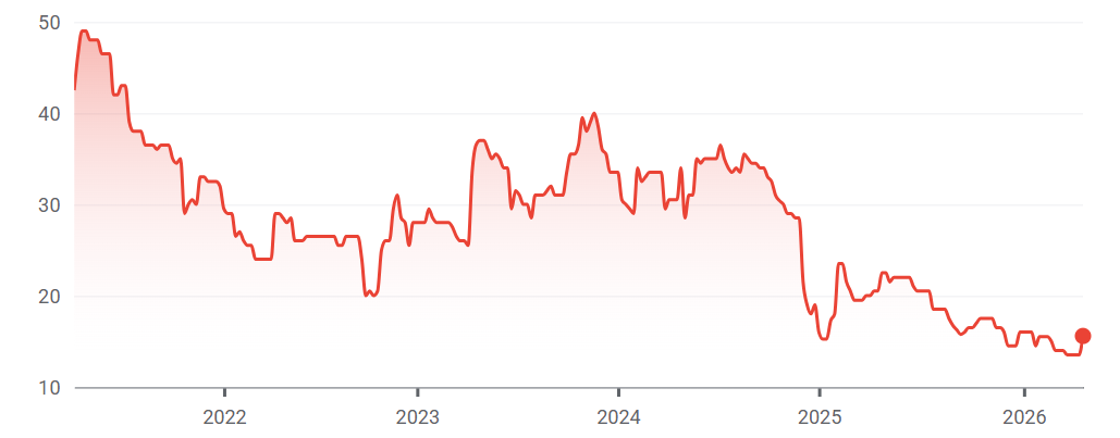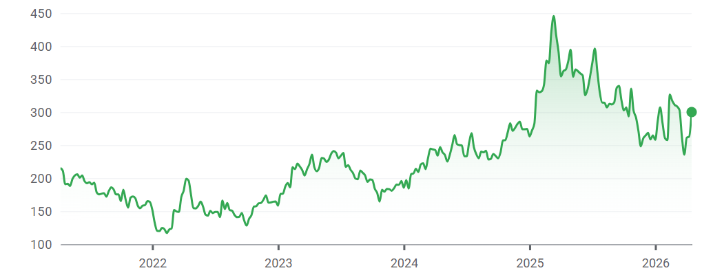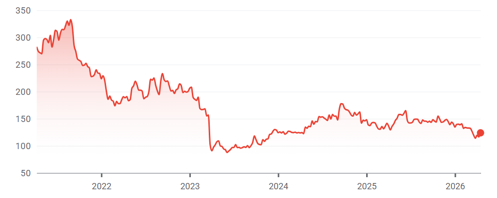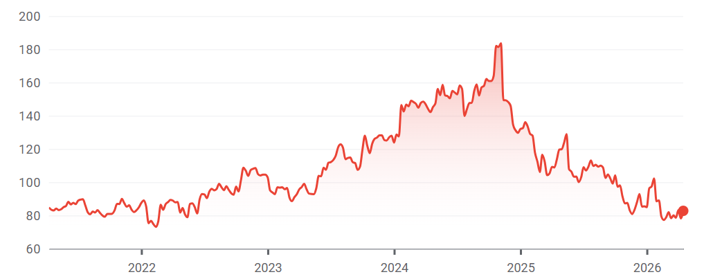Stock price performance over 5yrs