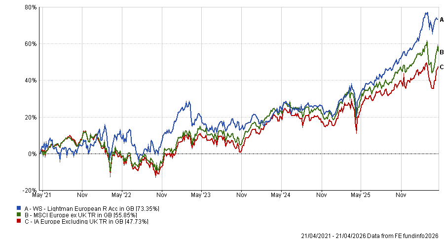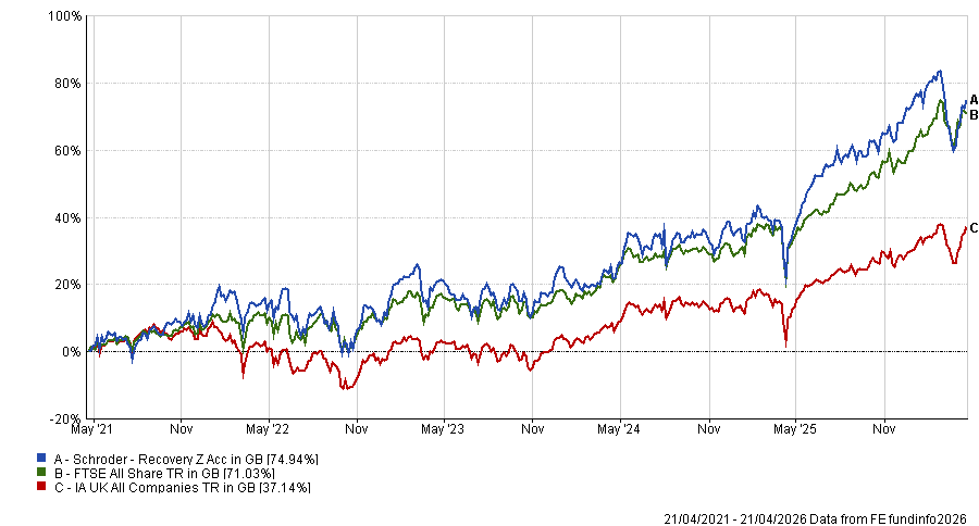 Between 2016 and 2025, the fund achieved a first-quartile return in the IA UK All Companies sector in five separate years.
