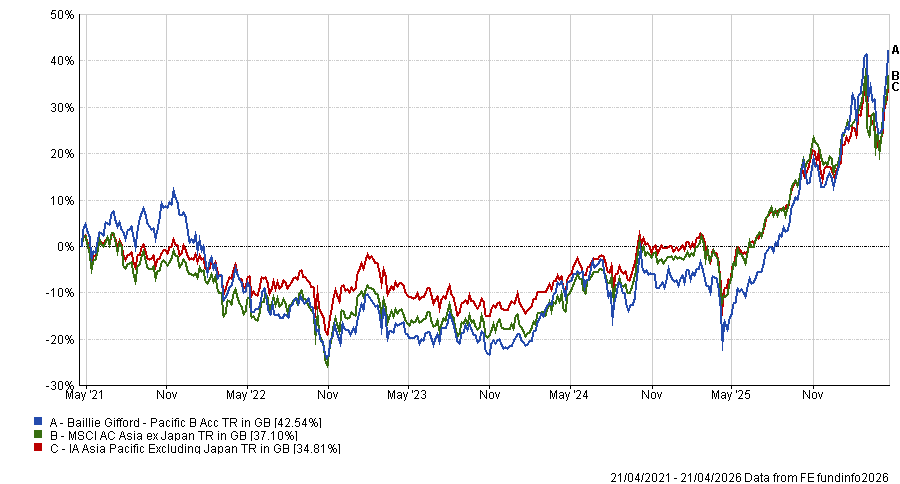 He pointed to the £3.7bn Baillie Gifford Pacific fund, which is co-managed by Roderick Snell and Ben Durrant and was one of the most sold IA Asia Pacific ex Japan funds in 2025 – shedding £831.5m.