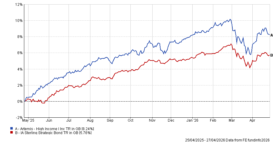Artemis High Income returned 6.5% over the year to 31 March, outperforming the IA Sterling Strategic Bond sector by 1.6 percentage points. Over five years, it delivered 22.5%, significantly ahead of the sector’s 8.4%.