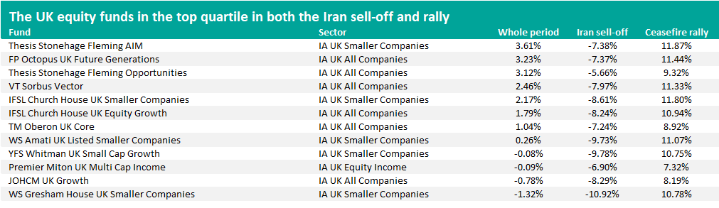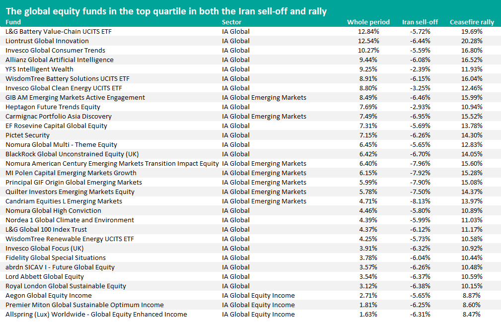 Only 3.4% of equity funds stayed in the top quartile of their sectors through both the Iran war sell-off and the subsequent ceasefire rally, research by Trustnet has found.